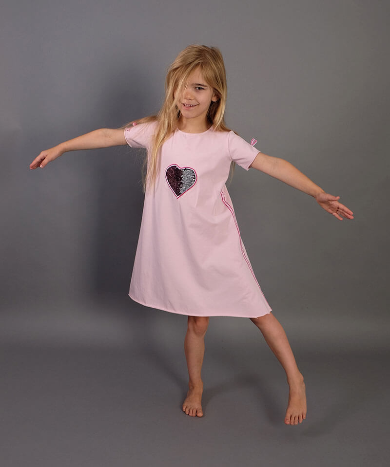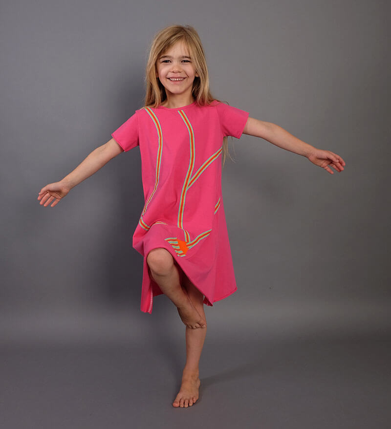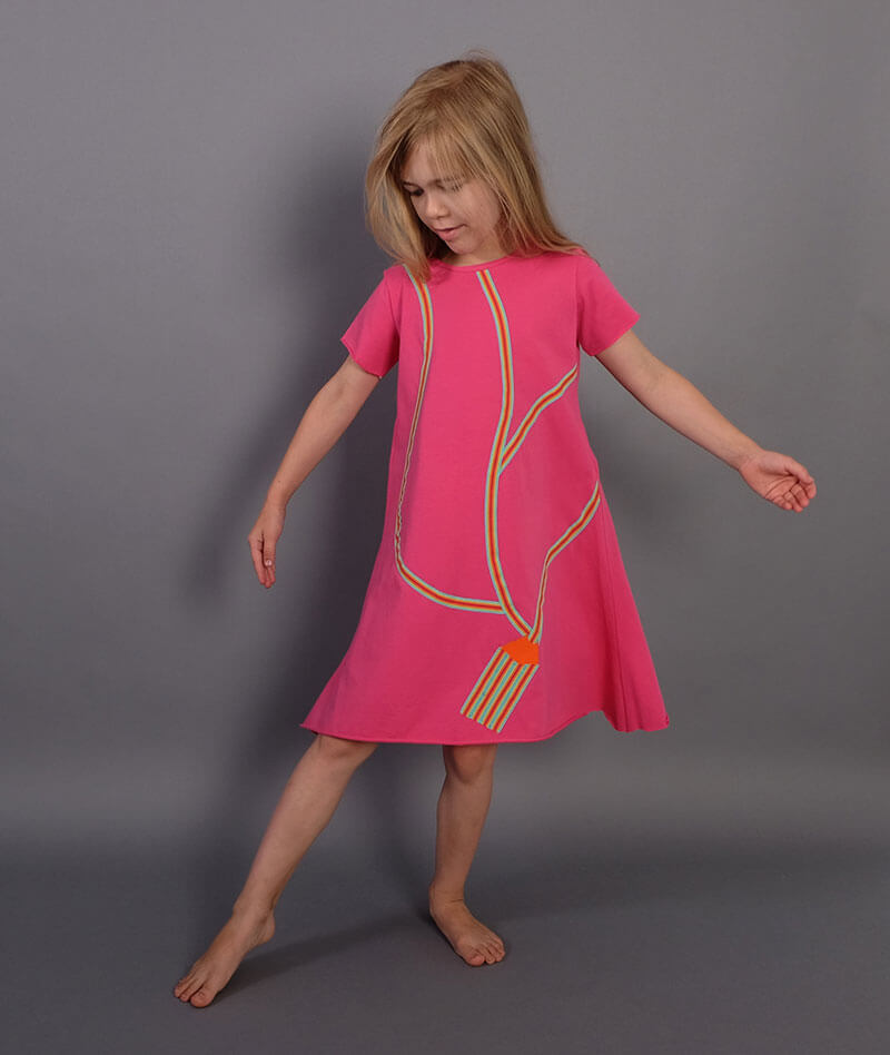 Hallo hr Lieben 😘 Wir haben heute ein neues Schnittmuster für ein Kleid online gestellt. Es ist ein wunderschönes und einfaches Basic-Kleid, welches durch Accessoires wie Bänder oder Applikationen ganz einfach aufgepimpt werden kann. Dadurch entsteht immer wieder ein ganz neuer Look. Das Kleid ist blitzschnell genäht, da die Ärmel und der Saum nicht versäubert werden, so dass sich der Saum leicht einrollt. Unsere liebe Silvia hat sich besonders viel Mühe gegeben und eine eigene Herzapplikation erstellt. Wie das geht? Ganz einfach: Schneidet ein Herz aus und näht es rundherum auf den Oberstoff auf. Hier solltet Ihr allerdings keine Applizierfolie verwenden. Danach näht Ihr einzelne Streifen ab. Es wird alles mit einem Zick Zack Stich genäht. Am ende schneidet Ihr dann den Stoff zwischen aus den Zwischenräumen der Streifen heraus. Eine super Idee, die man auch als negativ Applikation machen kann. Einfach auf die linke Seite aufnähen und den Oberstoff herausschneiden.