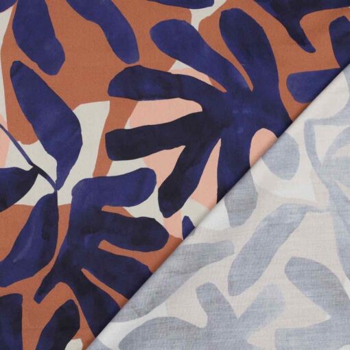 Baumwolle Satin, Retro Blumen Musterung Braun / Blau