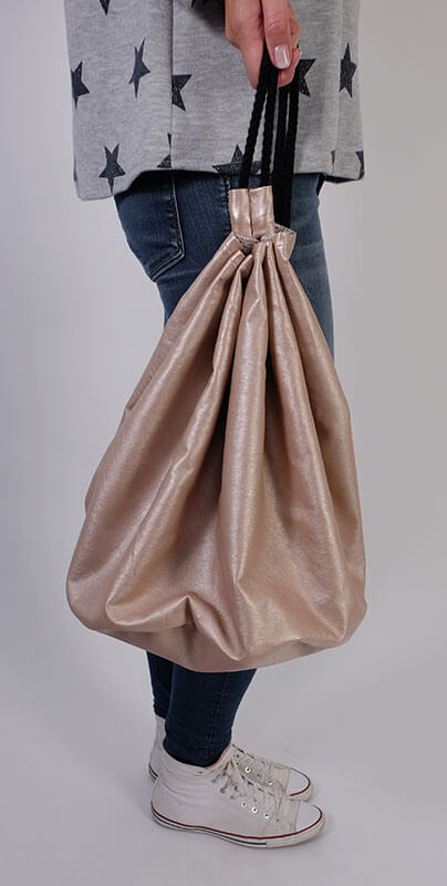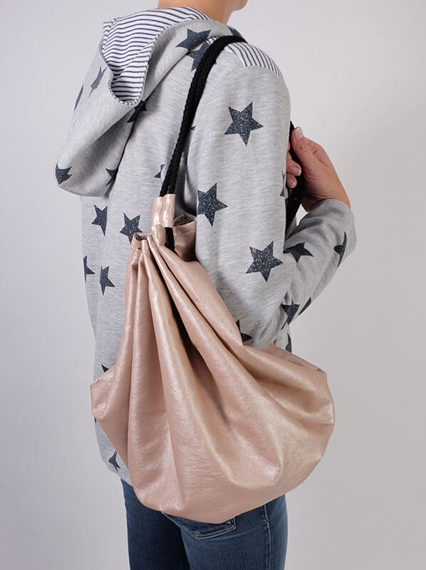 Für alle die Taschen lieben haben wir heute was, das Model “Inka”, eine unkomplizierte Beuteltasche mit Nieten und Kordel zum Raffen.