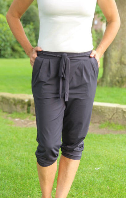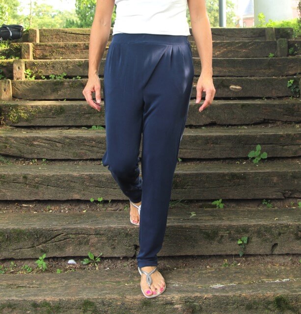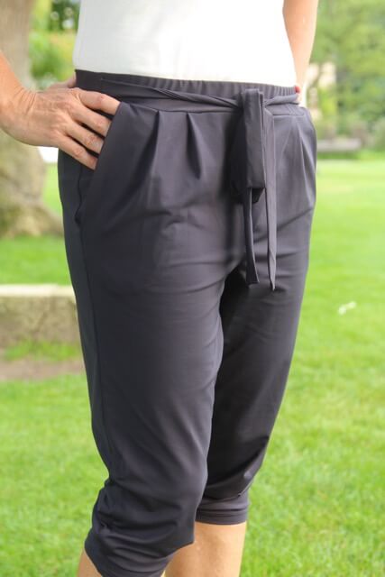 ilka2017-08-30T18:40:24+02:00Es gibt wieder ein neues Hosenmodell, diesmal mit schrägem Verlauf und einem Bindeband. Die Hose kann als lange oder kurze Hose genäht werden, je nach Jahreszeit. Der Stoff muss dehnbar und fließend sein, dann ergibt es diese hübsche Silhouette. Wir lieben diesen lässigen Style mit den Falten und der Eingriffstasche. Für blutige Anfänger ist die Hose nicht wirklich zu empfehlen, wer aber schon die ein oder andere Erfahrung mit Jerseyhosen hat, der kann sich hier ruhig ranwagen. Wir sind sehr auf Euer Feedback gespannt und wünschen Euch viel Spaß beim Nähen..)