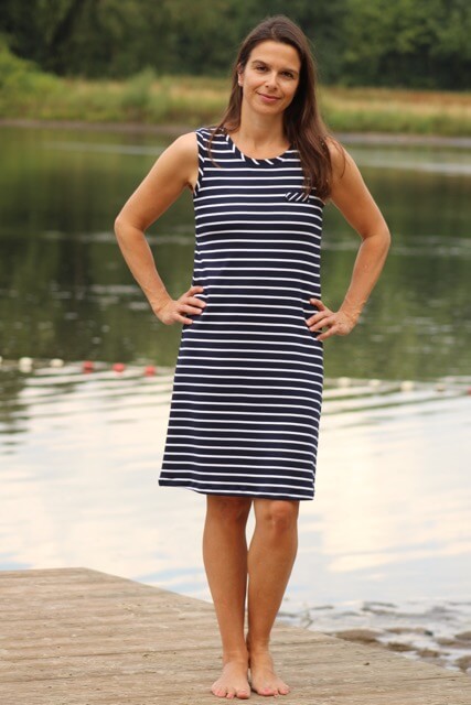 ilka2017-01-16T09:52:32+01:00Das Modell Amber ohne Arm und mit überschnittener Schulter ist wohl unser letztes Sommerkleid für diese Saison....-) Dieses leicht taillierte Kleid könnt Ihr grundsätzlich aus allen weich fallenden Stoffen nähen. Ob aus weichen Viskosestoffen oder aus Jersey, es sieht immer gut aus. Das Kleid kann mit Rundhals- oder V-Ausschnitt, mit oder ohne seitliche Taschen verarbeitet werden. Wenn Ihr das Kleid kürzt, dann bekommt Ihr ein unkompliziertes Shirt. Durch den legeren Schnitt ist bei stabilen Stoffen gar kein Reißverschluss notwendig, daher ist es auch ein schönes Anfängerprojekt. Wir haben hier einen leichten Viskosestoff mit einem Halbfutter verwendet. Ob Du ein Futter einnähst, ist materialabhängig. (Das Futter wird wie das Kleid zugeschnitten und vom Prinzip her wie ein Beleg eingenäht, im Ebook ist das beschreiben, es ist nicht schwer.) Das Modell ist ein wunderbar einfach genähtes und zugleich hübsches Sommerkleidchen.... Vielleicht habt Ihr ja doch noch ein bißchen Lust auf Sommer...-)?