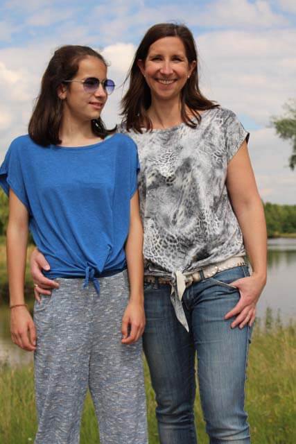 ilka2017-01-16T09:56:54+01:00Das Knotenshirt Sophia wurde immer wieder für Erwachsene nachgefragt, endlich haben wir es nun auch realisieren können...)) Wieder ein tolles Mutter Tochter Projekt! Im Schnitt sind 2 Versionen enthalten, denn wer keinen Knoten vorne mag, kann es sich auch als ganz normales, schlichtes Shirt nähen! Ein wunderbares Anfängerprojekt. Wir haben Viskosejersey und einen Meshprint verwendet. Baumwolle ist natürlich auch möglich, aber je weicher der Stoff fällt, desto schöner finden wir den Look! Viel Spaß beim Nähen, Euer Zierstoff Team....