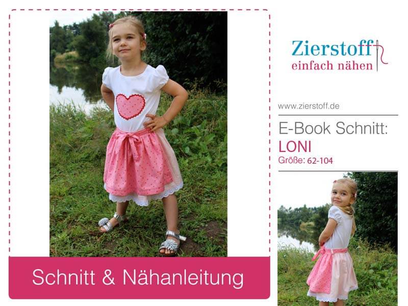 ilka2018-06-05T18:31:15+02:00Das Dirndl "Loni" besteht aus 3 Teilen, die Du auch separat anziehen kannst. Das Oberteil ist nämlich ein hübsches Mädchenshirt mit eingekräuselten Armen. Den Rock kannst Du auch ohne Schürze als weiten Sommerrock anziehen. Damit ist die Kombination bzw. der Schnitt auch anderweitig zu verwenden. Ein tolles Projekt für Nähanfängerinnen.... traut Euch hier ruhig ran, es ist einfacher als es aussieht!