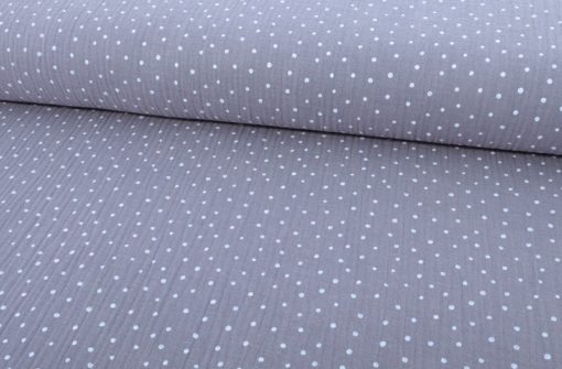 Gauze, Musselin – Double Gauze Grau mit weißen Punkten