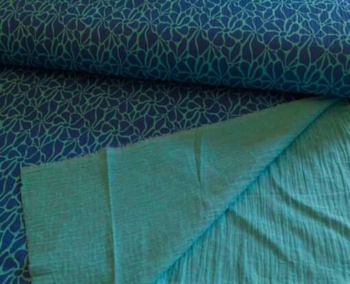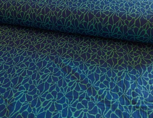 Gauze, Musselin – Blau Türkis – Blumen