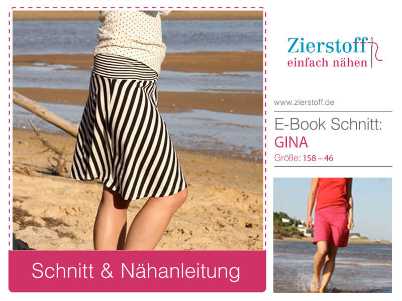 “Gina” ist für die Großen und Kleinen und das ganze Jahr über tragbar. Der breite, angeschnittene Bund zaubert eine hübsche Silhouette und ist für alle Figuren sehr gut geeignet. Der interessante Streifenverlauf kommt dadurch zustande, dass der Rock schräg zugeschnitten wird. Schaut Euch doch einfach mal unsere Bildergalerie an und holt Euch ein paar Inspirationen?