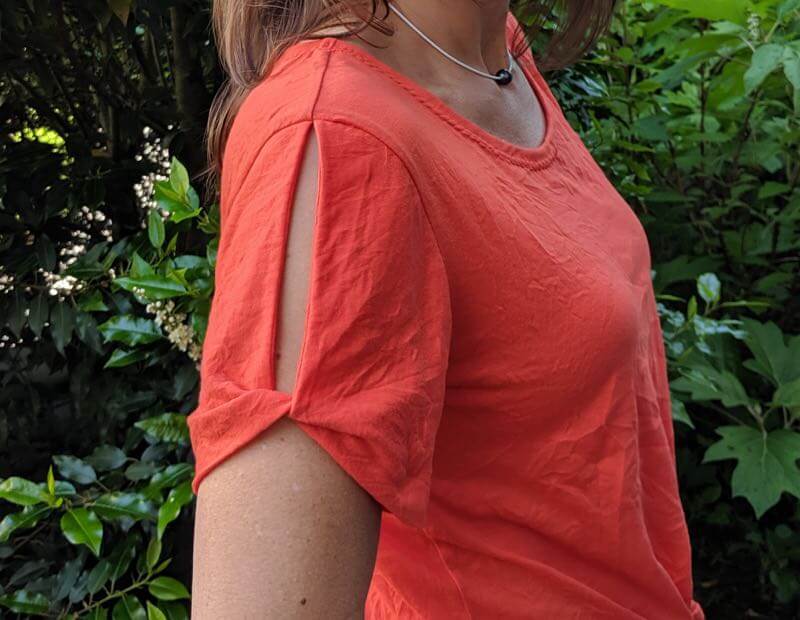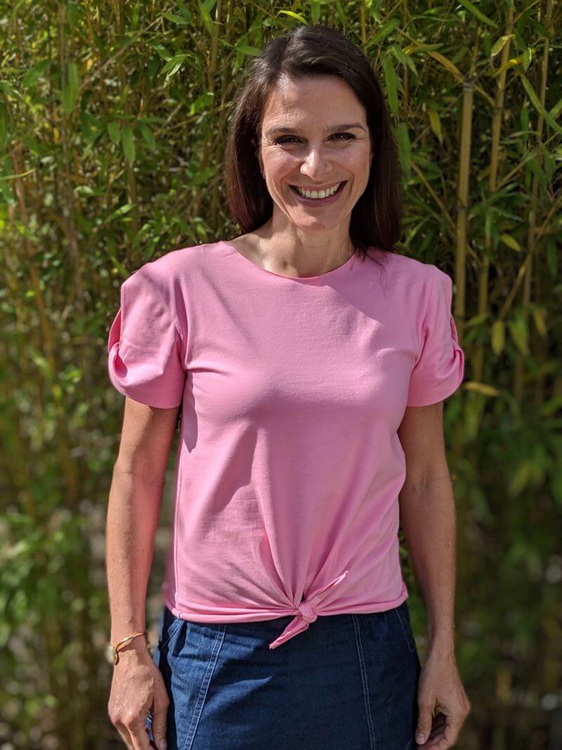Unser neues Knotenshirt ENISA hat zwei raffinierte Ärmelvarianten im Schnitt beinhaltet. Einen “klassischen” Ärmel und einen verdrehten, zweigeteilten Ärmel. Dadurch habt Ihr etwas Variationsmöglichkeiten und könnt das Shirt immer wieder neu aussehen lassen…. Das Teil sollte auf jeden Fall in jeden Urlaubskoffer mit rein….-) Die Verarbeitung am Knoten ist mit einem Beleg konzipiert, wer aber möchte kann die Kanten “offen” lassen, so ist das Teil in 5 Minuten genäht. Da Jerseystoffe nicht ausfransen geht das problemlos….-) Wir findet Ihr das Schnittmuster für das Knotenshirt? Schreibt uns gerne eine Email mit Wünschen und Anregungen, wir freuen uns auf einen regen Austausch!