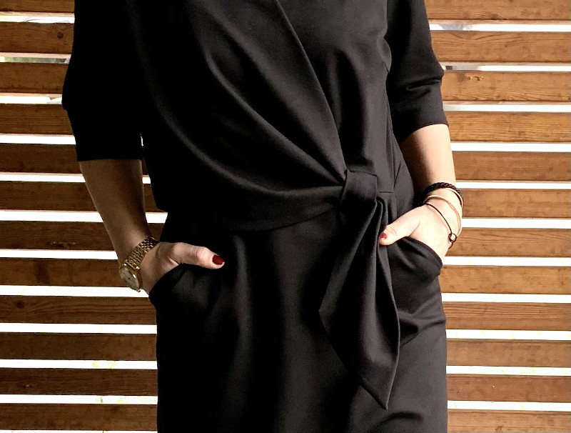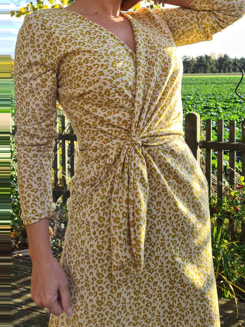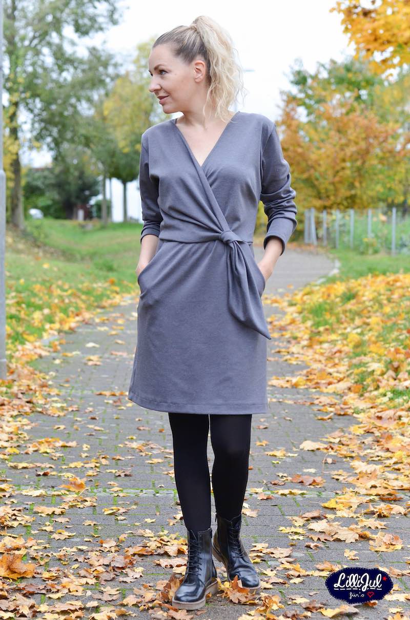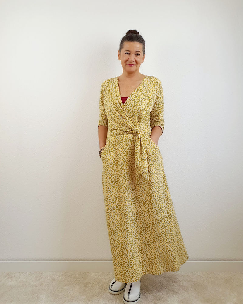 Ein raffiniertes Kleid mit Knoten und Wickeloptik, welches durch die Auswahl des Stoffes immer wieder anders aussehen wird. Das Kleid kannst Du in langer Midi Länge, knielang, mit kurzem oder langem Arm nähen. Das Schnittmuster ist sehr vielseitig und jedes Kleid bekommt durch die Stoffauswahl immer einen neuen Look. Es gibt viele Ideen kreativ zu werden.
