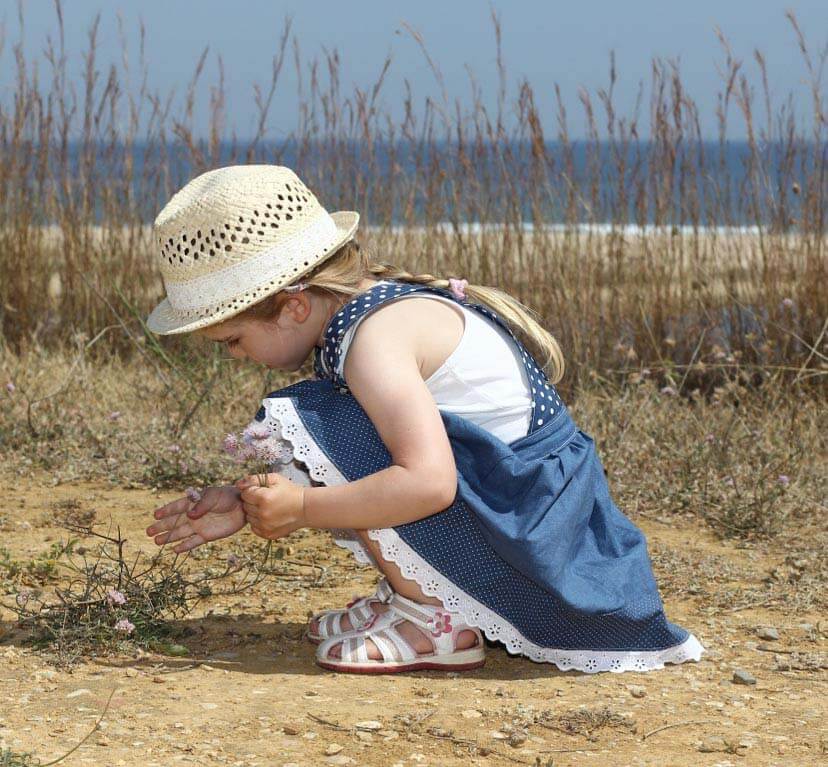 Das Kleid kannst Du aus Sommer und Winterstoffen nähen. Mit oder ohne Strumpfhose bzw. mit kurzarm oder langarm Shirt ist es das ganze Jahr über tragbar. Aus Cord genäht sieht es auch sehr hübsch aus!