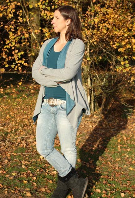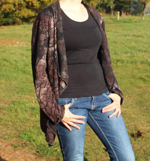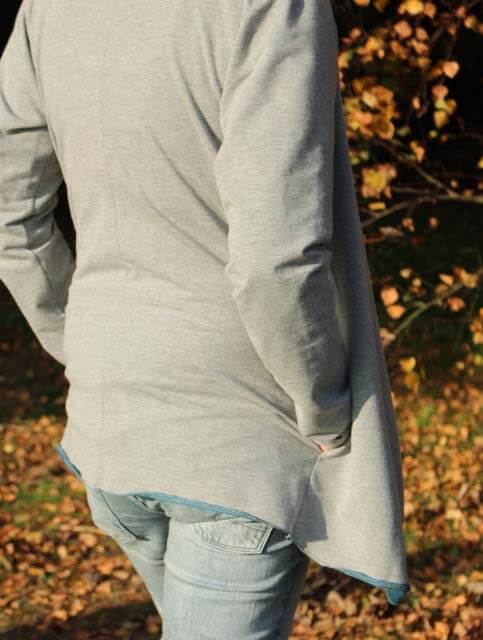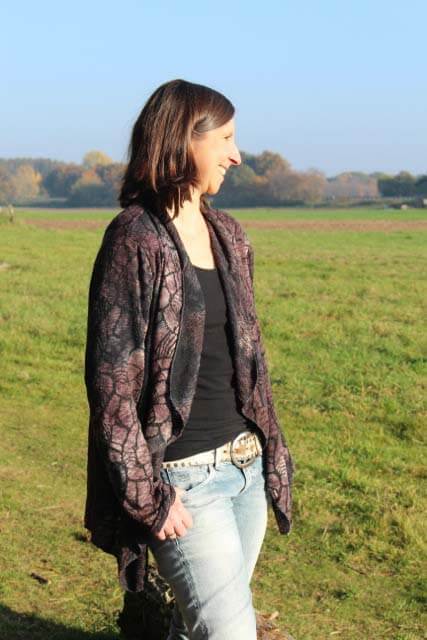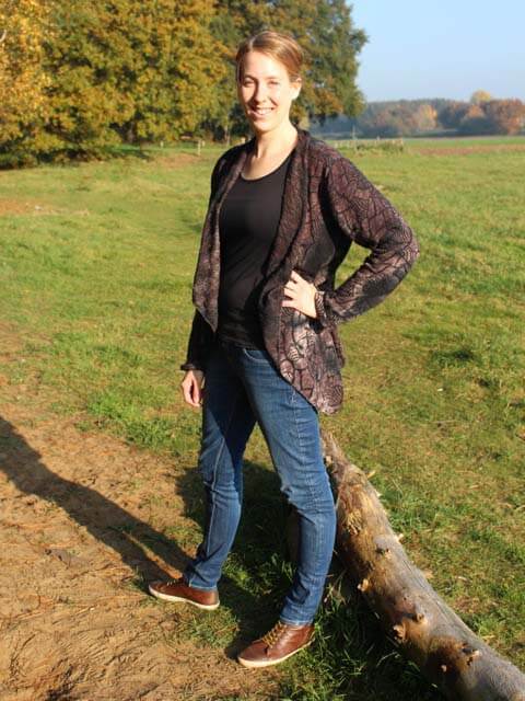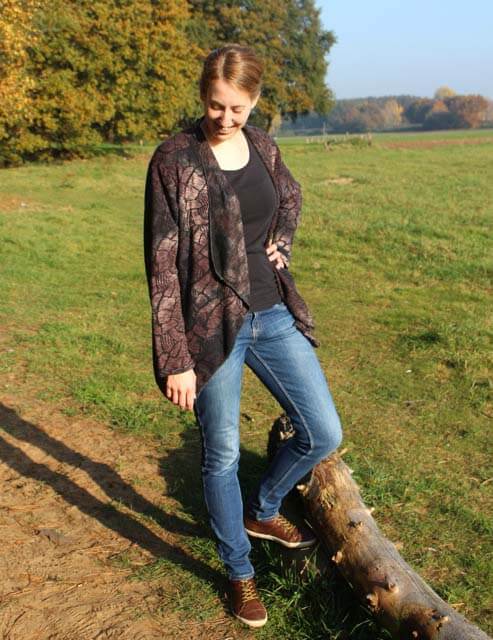 Die Jacke “Delia” mit angeschnittenem Schalkragen könnt Ihr aus verschiedensten Materialien nähen. Sie wird je nach Stoff immer wieder anders aussehen und einen besonderen Look haben. Das Modell werdet Ihr sicher einige Male nähen, denn es ist nicht nur optisch ein Highlight. Auch das Nähen geht sehr schnell und einfach und ist auch für Nähanfängerinnen gut machbar. Wichtig ist die Stoffauswahl, da die linke Warenseite durch den “Schalkragen” sichtbar wird. Schaut Euch doch weitere Bilder bei uns im Shop an?