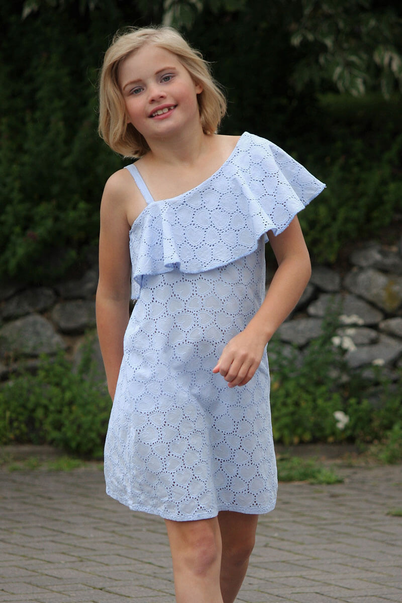 Wir sind wieder mal schwer verliebt, in unser neues Schnittmuster „Namika“. Wie Ihr sehen könnt gibt es das Kleid auch für Kinder von Größe 110 – 152. Ein Oneshoulder Volantkragen, den ihr verschieden verarbeiten könnt. Im Ebook erklären wir Euch das ganz detailliert! Die hier vernähten Stoffe haben wir natürlich auch noch im Shop!