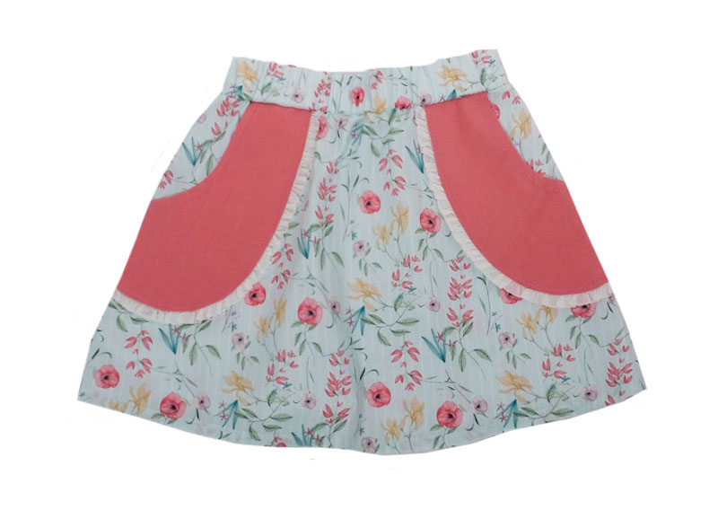 Du möchtest einen super einfachen Rock für Dein Töchterchen zaubern? Ob in Baumwolle, Jersey oder Jeans, der Rock sieht einfach toll aus und ist für alle Jahreszeiten geeignet. Im Schnitt sind zwei Varianten enthalten. Eine an der Seite abgerundete Version und eine gerade Version. Du kannst an beide Varianten entweder ein Strickbündchen oder einen Bund aus Stoff mit Gummiband annähen. Es ist zudem eine separate Anleitung mit dabei, wie Du die aufgesetzte Tasche mit einem Paspel verzieren kannst.
