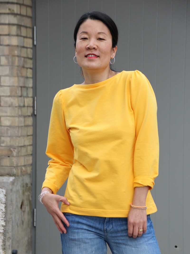 Ein neues Schnittmuster ist fertig, ganz still und leise haben wir es herausgebracht. Das Modell “Bernice” ist vielseitig weil Ihr es mit langem oder kurzem Arm nähen könnt, mit Bündchen oder ohne und mit diversen Halsausschnittvarianten. Ein Ebook das für den Sommer nicht fehlen darf..)))