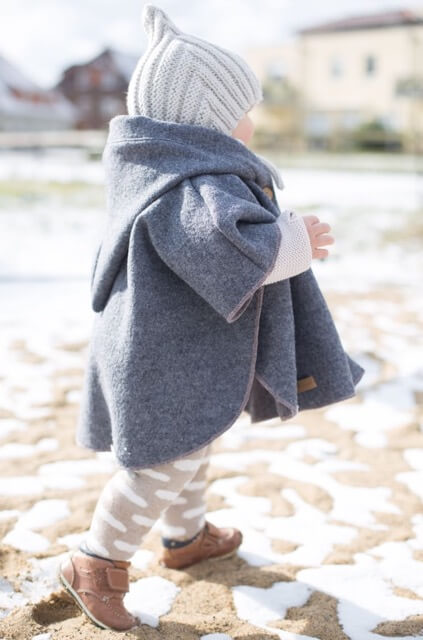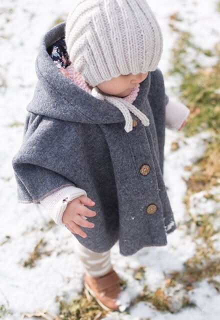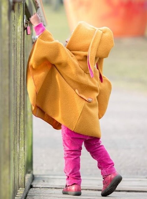 Im Schnitt sind viele Optionen enthalten. Ob mit runder oder eckiger Kapuze, mit oder ohne Ohren, wir finden alle Varianten einfach bezaubernd. Ihr könnt bei diesem Cape richtig kreativ werden. Alleine durch farbiges Garn, Bänder, Applikationen oder besondere Knöpfe könnt Ihr tolle Akzente setzen.