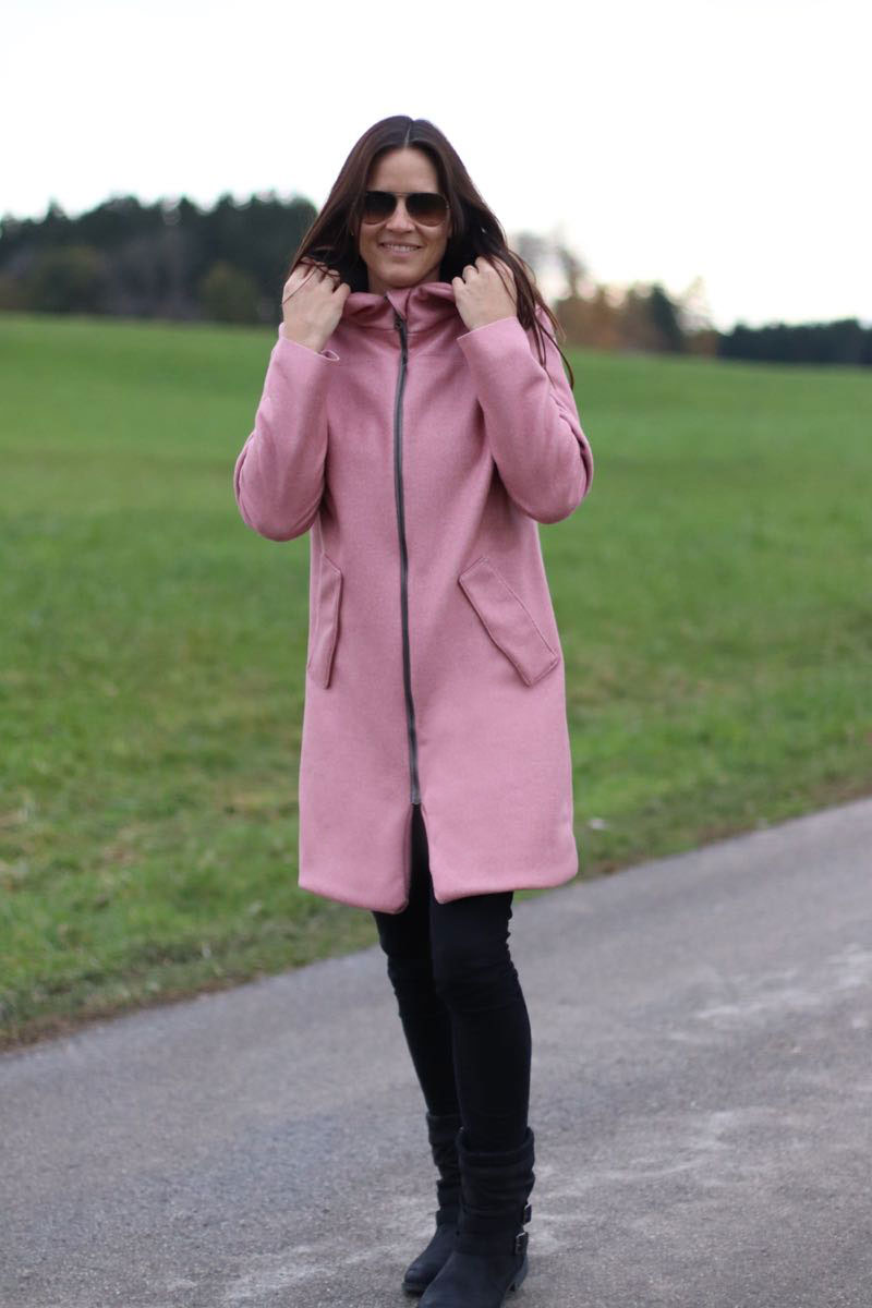 Mit dieser Jacke geht man selbst bei Schmuddelwetter gerne raus. Der lässige Schnitt kann variabel gestaltet werden denn die kreativen Möglichkeiten sind bei diesem Schnittmuster sehr vielfältig. Das Schnittmuster ist aber nur für Fortgeschrittene zu empfehlen, etwas kniffelig ist das Einarbeiten des Reißverschlusses. Diese hübsche Regenjacke wird von innen gefüttert, sprich aus zwei  verschiedenen Stoffen genäht. Somit könnt Ihr auch einen dickeren, flauschigen Innenstoff verwenden und die Regenjacke damit auch wintertauglich machen…) Ein Video zu dieser Jacke und zu den Taschen haben wir natürlich auch schon gedreht, damit könnt Ihr den Nähaufwand super abschätzen und selber entscheiden ob das ein Projekt für Euch ist!