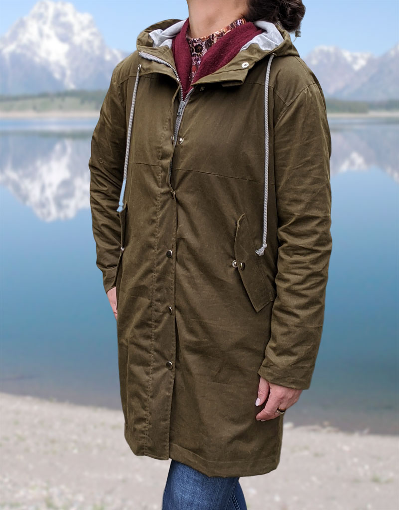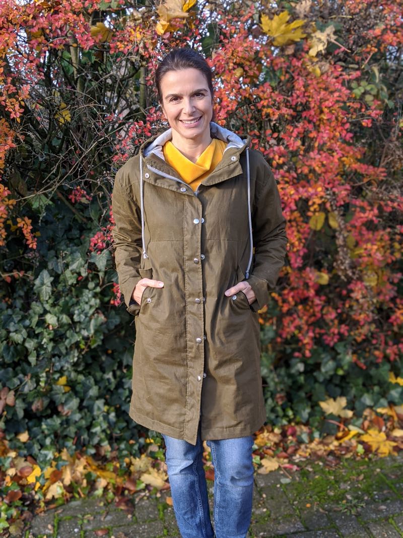 Ab jetzt gibt es ganz neu für Euch die Jacke bzw. der Regenmantel Camelia auch für Damen. Die Jacke kann super als Regenjacke oder als Wetterjacke aus den neuen trendigen Oil Skin Stoffen genäht werden. Damit geht Ihr perfekt durch jedes Wetter. Der Oil Skin Stoff  ist ein mit einer Wachsschicht beschichteter Baumwollstoff welcher atmungsaktiv und wasserabweisend ist. Outdoorbekleidung und Taschen lassen sich super aus diesem Stoff nähen. Durch die leicht fettige Wachsschicht bekommen Jacken und Taschen im Laufe der Zeit eine besondere Patina, die das Produkt auszeichnet, ähnlich wie bei Leder.