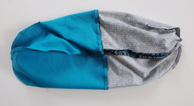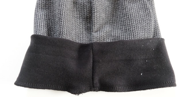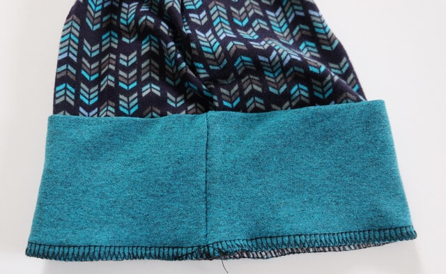 Zuerst beschreiben wir die Wendemütze: Wende die Außenmütze auf rechts, die Innenmütze auf links, sodass bei Letzterer die Nähte sichtbar sind. Nun wird die Außenmütze in die Innenmütze geschoben und alles wird am Saum rundum zusammengesteppt. Verwende hier einen dehnbaren Stich. Durch die Wendeöffnung kannst Du den Beanie dann wenden und auseinanderziehen. Jetzt wird die Wendeöffnung geschlossen, indem Du die Nahtzugabe nach Innen legst und die Mütze beispielsweise mit einem Leiterstich von Hand zunähst. Dann nur noch die Innenmütze in die Außenmütze legen und schon ist die Beanie fertig. Wir empfehlen, den Saum der Beanie hier noch mal mit einem elastischen Stich abzusteppen, so dass nichts mehr verrutschen kann.