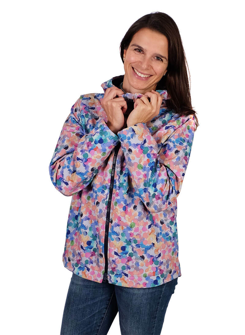 Ja, endlich ist auch unsere Johanna für die Mamis fertig geworden!!!! Für die Kinder gibt es das Schnittmuster schon seit letzter Woche. Der Schnitt unterscheidet sich etwas von den Kindern weil wir hier noch seitliche Eingriffstaschen integriert haben. Wir haben gedacht, dass nicht jede Frau aufgesetzte Taschen mag und eine Alternative integriert. (Wer die Tasche auch bei der Kinderjacke einnähen möchte, der kann sich unser kostenloses Schnittmuster für seitliche Eingriffstaschen ganz einfach im Shop herunterladen.) Die Jacke ist gerade geschnitten und hinten leicht abgerundet. Im Vorderteil wird ein teilbarer Reißverschluss eingearbeitet, der mit den Kapuzen und Saumbelegen eingefasst wird. Die Jacke wird zwar ohne Futter gearbeitet, aber durch die Reißverschlussverarbeitung empfehlen wir das Schnittmuster für die Damenjacke trotzdem nur für Fortgeschrittene. Nähanfänger sollten hier wirklich die Finger davon lassen und zuerst ein einfaches Modell wie z.B. unsere Wendejacke Henriette nähen. Ihr könnt das Schnittmuster Johanna aus Softshell Materialien oder auch aus Wollstoffen nähen, die Möglichkeiten sind wie immer vielfältig. Den hier gezeigten Softshell Stoff haben wir natürlich auch noch am Lager! Wir haben glücklicherweise mehrere Ballen gekauft da er beim Lieferanten sofort ausverkauft war. Also, solange der Vorrat reicht..))