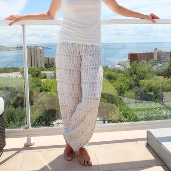 Unsere neue Hose „Ivy“ hat das Zeug zur Lieblingshose….  sie ist aus leichten Stoffen gerade für die Tage ideal, wenn man nicht weiß was man anziehen soll….) Wir haben sie schon aus vielen leichten Viskosestoffen genäht und lieben den Look. Die Hose hat Abnäher am Hosensaum und wird am Bund mit einem Bündchen verarbeitet. Vom Prinzip her ist die Sommerhose so schnell genäht, dass auch blutige Nähanfängerinnen ihre Freude daran haben! Das Oberteil ist aus unserem aktuellen Nähbuch „Nähzeit“.
