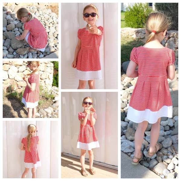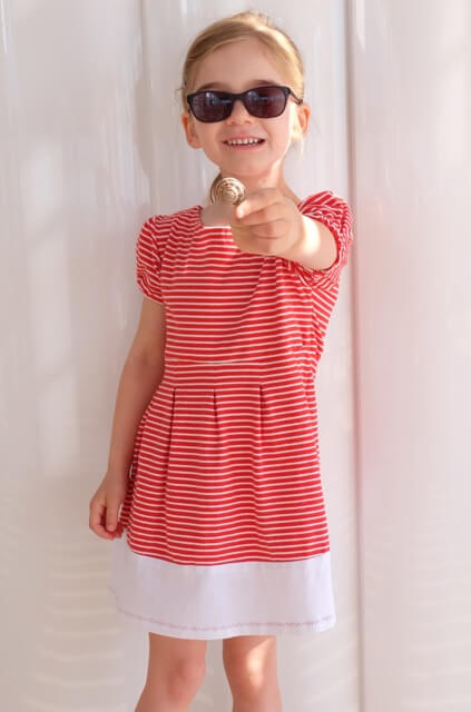 Aus dem wieder eingetroffenen Pusteblumestoff haben wir auch gleich das Kleid “Ramona” genäht. Das gibt es seit gestern bei uns im Shop. Ein einfaches, aber dennoch raffiniertes Sommerkleid durch den Streifen am Saum und auf der Taille. Je nach Stoffkombi wird es dann auch immer wieder anders aussehen..) Ein super Anfängerprojekt…..!
