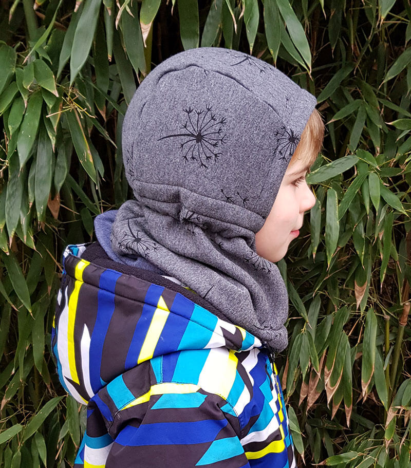 bei dem Wetter hat man doch so richtig Lust sich hinter die Nähmaschine zu verschanzen und eine Mütze zu nähen, oder? Wie gut, dass wir da ein neues Schnittmuster für Euch haben, für Kinder und für Erwachsene, eine Sturmhaube “Dante”. Das ist ein toller Schnitt, wir selber finden ihn sehr praktisch. Weil man kann das Oberteil einfach nach hinten klappen und es bleibt am Hals noch schön warm bzw. das Kind verliert nicht seine Mütze…… (aus eigener Erfahrung kommen wir mit den Nähen da nicht hinterher. Aus ehemaligen liebevoll genähten Sets wurde am Ende eine große Sammeltestkiste…)) Geht es Euch genauso? Findet Ihr das Schnittmuster auch praktisch? Die kleine Maus hat sich gestern übrigens sofort die Mama Mütze „gemopst“…. ) Das Material ist ein kuscheliger Alpenfleece, von außen sieht er aus wie ein Sweatshirtstoff, von innen ist er mit einem weichen “Fell” versehen. Aber natürlich könnt Ihr auch einen dehnbaren Fleece Stoff nehmen. Das Schnittmuster für diese Mütze gibt es für Kinder und Erwachsene, das ist ein super Familienprojekt..) Habt Ihr noch Stoffreste die auf eine Verarbeitung warten? Dann nix wie ran an die Nähmaschine..) Ein passendes Nähtutorial gibt es auch noch von uns!
