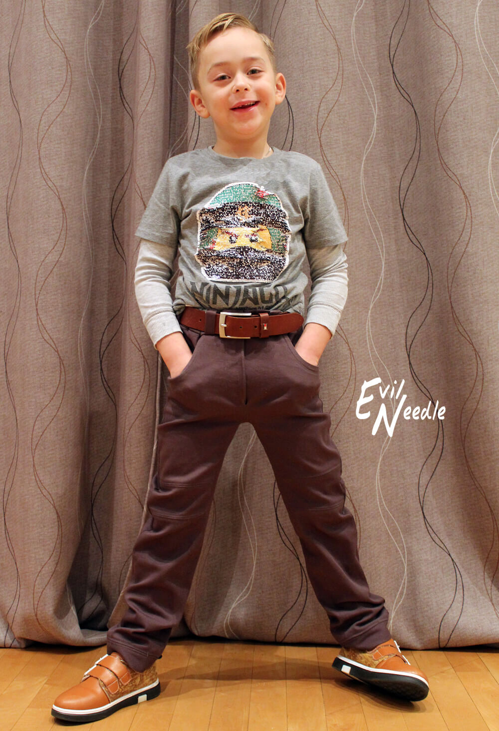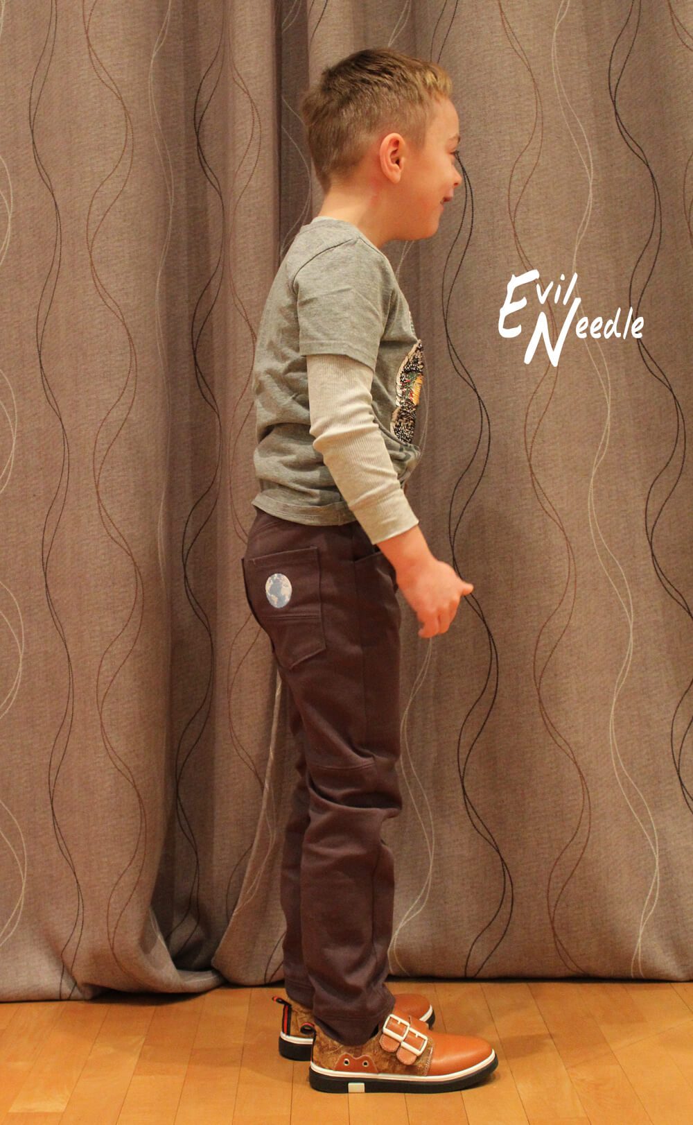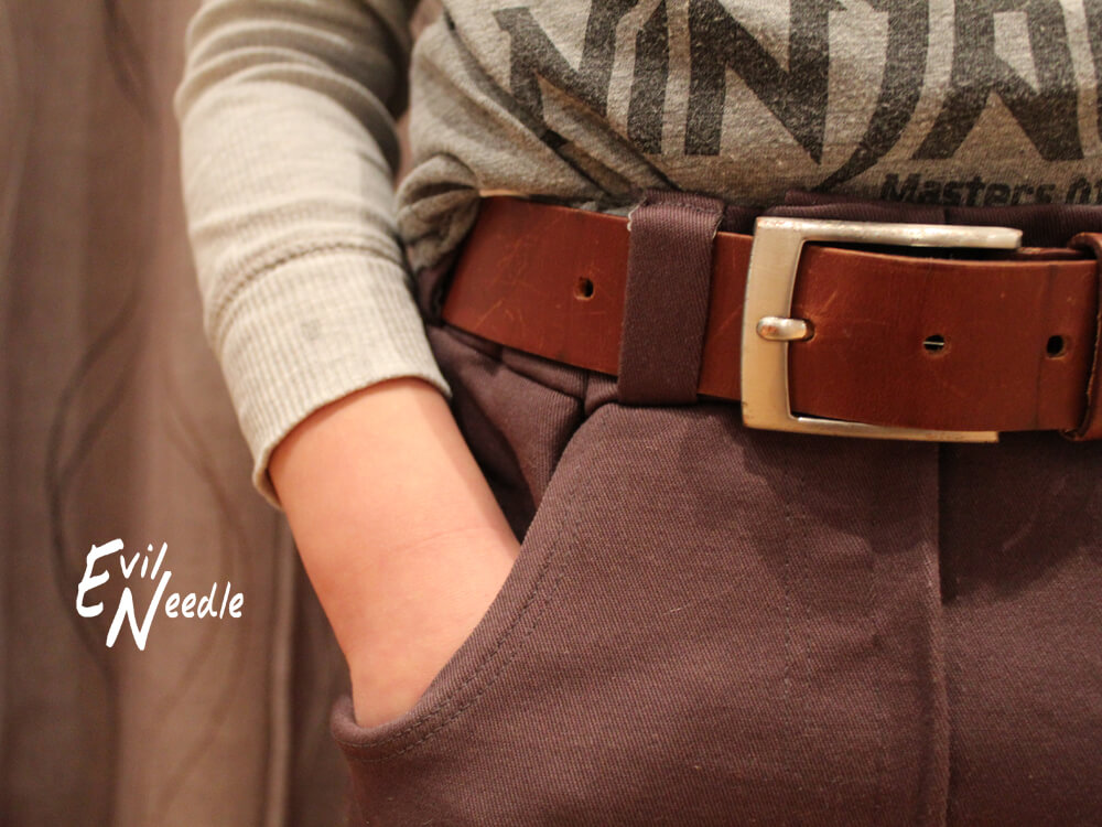 Dieser coole Hosenschnitt ist mit einem gedrehten Bein und mit Teilungsnähten konzipiert. Durch die legere Weite ist die Hose auch für alle Figurtypen geeignet. Durch die Nähte macht die Hose zwar etwas mehr Arbeit, aber auch wirklich Spaß zu Nähen. Du wirst auf jeden Fall ganz stolz auf das Endprodukt sein. Wenn Du sie einmal genäht hast, wirst Du sie sicher noch ein zweites Mal nähen! Das sind zumindest unsere Erfahrungswerte.