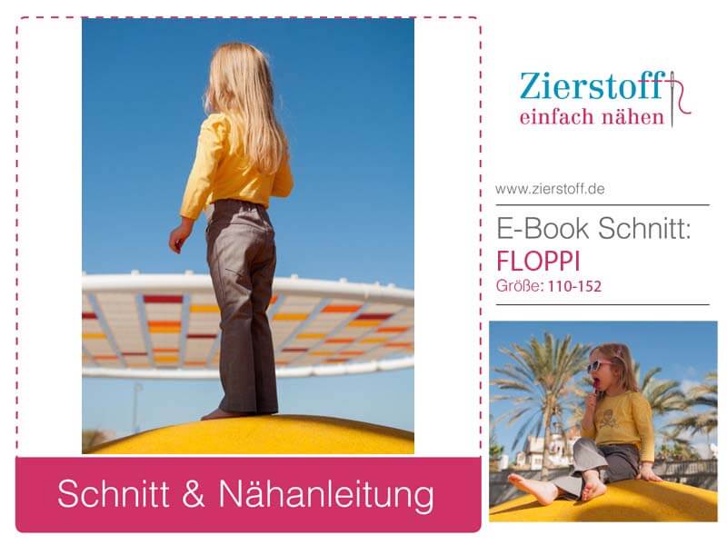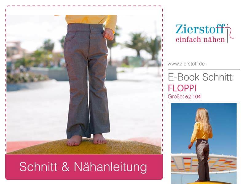 Dieses Modell ist eine eher schmal geschnittene Hose für Jungen und Mädchen mit einer Fake RV Verarbeitung.  Die Hose sieht durch unterschiedliche Stoffe und Verarbeitungsmöglichkeiten auch immer wieder anders aus. Du kannst die Hose in allen gestretchten Materialien nähen, somit ist sie auch das ganze Jahr über einsetzbar. Wir erklären im Ebook auch noch eine einfache Variante für das Bündchen ohne Knopflochgummi. Du kannst das Modell Floppi auch ganz einfach “pimpen” in dem Du auf die Vorder- und Hinterhose Flicken aufnähst…..hier kannst Du so richtig kreativ werden und deine “Hippiehose” nähen…. Und natürlich kannst Du den Schlag auch noch ausstellen, sprich eine Hose a la 70er Jahre machen…..