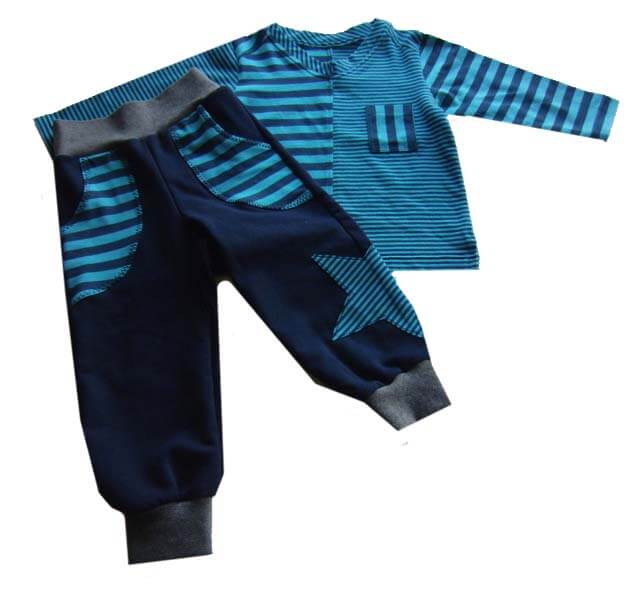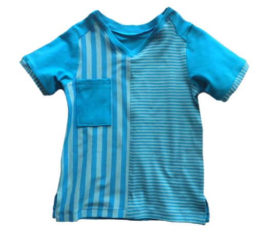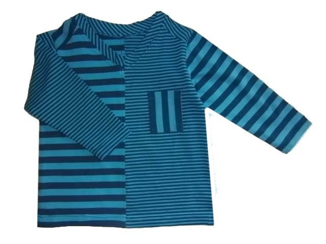Das Besondere an dem Style “FIETE” ist, dass er durch die verschiedenen Stoffkombinationen immer wieder anders aussieht. Im Ebook erklären wir den Zuschnitt ganz genau, inklusive der Variante mit einem quer verlaufenden Fadenlauf. Du hast die Möglichkeit, das Shirt mit einem Rundhals, V-Ausschnitt, langen oder kurzen Ärmeln zu nähen. Die aufgesetzte Tasche auf dem Vorderteil ist ebenso wie das Bündchen am Ärmel optional. Das Shirt wird vom Prinzip her wie unser Style Micky genäht und ist mit Rundhals auch für Anfänger machbar. Die Version mit den langen Ärmeln werden wir erst zum Herbst hin bebildern, im Schnitt sind aber beide Längen beinhaltet. Schaut es Euch doch einfach mal an?