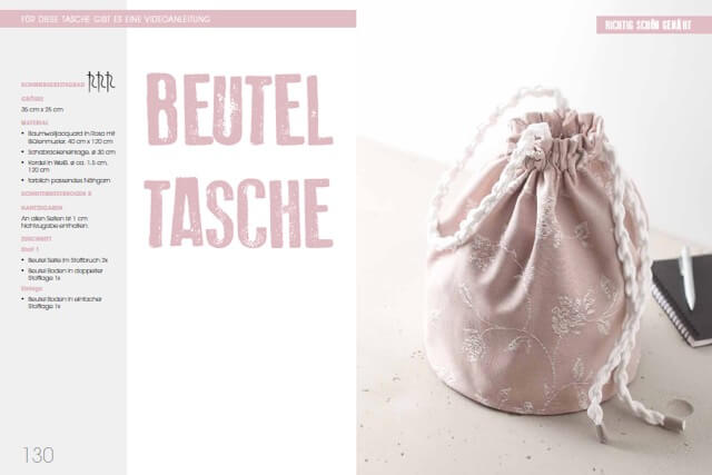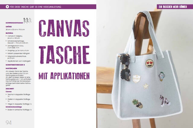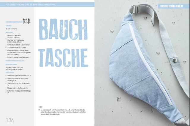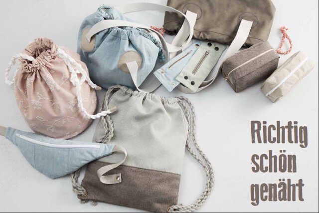 In dem Nähbuch sind 18 Modelle enthalten. Anfangs starten wir mit sehr einfachen Modellen um gerade Nähte und Rundungen zu nähen. Die Projekte werden dann schrittweise gesteigert, so dass am Ende schöne Taschen genäht werden können. Alle Modelle sind auf großen Schnittmusterbogen im Buch enthalten.