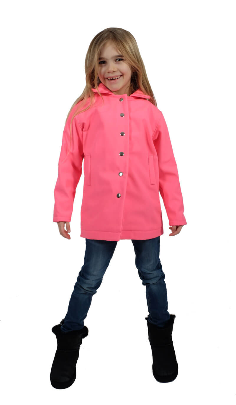 Wer hat keine Lust mehr auf dicke Jacken und will schon ein paar Übergangssachen nähen? Dann schaut Euch doch mal unseren Kindermantel Katharina an! Wir haben das Schnittmuster und das Ebook noch mal erweitert, somit hat Ihr jetzt viel mehr Möglichkeiten den Mantel zu nähen. Wer möchte, der kann sich eine “richtige” Leistentasche einarbeiten. Hier haben wir vor einigen Tagen ja ein neues Video dazu veröffentlicht. So sollte es dann auch jedem gut gelingen. Wer aber Zeit sparen möchte und keine Lust darauf hat, der kann sich eine einfache, optisch schöne “Fake” Leistentasche aufnähen. Dann gibt es noch weitere Optionen für das Schnittmuster: Mit Futter oder ohne, d.h. nur mit einem Beleg. Die Falten im Rückenteil sind auch nur noch optional und können durch den Zuschnitt des Rückenteils auch entfallen, das ist Eure Entscheidung. Dann habt Ihr noch die Qual der Wahl diesen Mantel als Zweireiher oder Einreiher, leicht ausgestellt oder eher gerade zu nähen, auch das ist im Ebook ganz genau erklärt. Wie Ihr also seht könnt Ihr das Schnittmuster einige Male nähen und es wird immer wieder anders aussehen. Ein Video für den Mantel mit Futter haben wir damals schon gedreht, das sollte auch noch mal helfen..)) Also, dann nix wie ran an die Nähmaschine und einen hübschen Mantel aus Fleece oder leichten Wollstoffen nähen. Für unseren Einreiher ohne Falten im Rückenteil haben wir einen neonfarbenen Softshell Stoff gewählt!