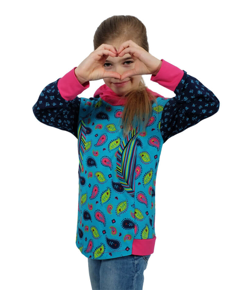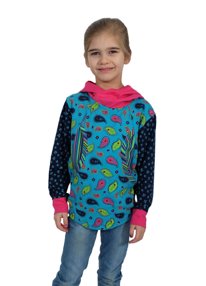 Wir sind gerade dabei viele “alte” Schnittmuster zu nähen… dabei aktualisieren wir dann das Ebook und justieren auch noch mal den Schnitt falls notwendig. Wir sind ja auch nie zufrieden mit uns und wollen immer besser werden. Durch die vielen Erfahrungswerte und Eurem tollen Feedback ist das ja auch immer wieder möglich. Die letzte Woche war Ida dran. Wir lieben das Schnittmuster für dieses Kinderhirt immer noch denn es hat eine ganz tolle Verarbeitung, mal was ganz anderes. Die Tasche wird vorne eingearbeitet und am Saum ist das Bündchen nicht durchgehend sondern endet an der seitlichen Teilungsnaht. Nach dem Nähen haben wir die Passform etwas optimiert, so dass es noch besser sitzt als vorher. Wer sich den Schnitt schon gekauft hat sollte ihn im Kundenkonto dann noch mal neu herunterladen, dort werden alle Updates abgespeichert. Ihr könnt uns aber auch immer eine Mail schreiben, wir helfen gerne weiter. Für das neue Modell haben wir verschiedene Jerseystoffe aus einer Serie verwendet, es ist aber natürlich auch möglich alles aus einem Stoff zu nähen. Hier gibt es also super viele Kombinationsmöglichkeiten für Eure Kreativität. Habt Ihr Lust Ida mal zu nähen? Dann werdet Ihr hier fündig: Gr. 62-104 Gr 110-152