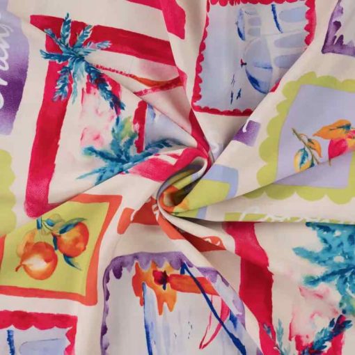Viskosestoff, Patchwork, Bilder auf Ecru