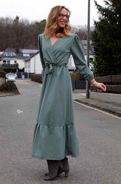 Bist Du noch auf der Suche nach einem Maxikleid welches ganzjährig tragbar ist? Dann schaue Dir unser Schnittmuster Liane doch einfach mal an! Es ist recht einfach zu nähen und wer sich unsicher ist kann sich vorab unser Nähtutorail dazu anschauen. Hier erklären wir Step by Step alle Schritte…. wir finden das ist anfängertauglich…) Aber überzeeuge Dich selbst. hier zeigen wir das Video! Ob aus Viskose oder aus leichten Batiststoffen, das Kleid bekommt immer wieder einen komplett anderen Look. Ob mit High Heels oder mit Stiefeln, die Kombinationsmöglichkeiten sind vielfältig. Wir hoffen Euch gefällt das Kleid mit Wickeleffekt und Stufen ebenso gut wie uns..))) Ach ja, das Schnittmuster gibt es digital oder auch als Papierschnittmuster!
