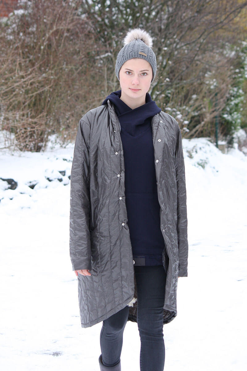 wir haben endlich diesen tollen Mantel Biljana online. Die Reaktionen auf Instagram waren ja super, daher haben wir uns auch richtig beeilt..)) Dieser unkomplizierte Mantel ist ein toller Begleiter durch das ganze Jahr. Warum? Weil er in allen Lebenslagen getragen werden kann. Ihr könnt ihn entweder für Indoor oder aus Wollwalk für Outdoor nähen. Im Schnittmuster sind seitliche Eingriffstaschen beinhaltet, diese können aber auch ganz einfach weggelassen werden. Ebenfalls könnt Ihr den Mantel mit einer „Rundung bzw. Spitze“ oder vom Verlauf her gerade zuschneiden. Den Wollbouclé-Stoff, den wir hier in Senf und Petrol vernäht haben bieten wir in 3 weiteren Farben an. (Schwarz, Ecru, Bordeaux) Das ist ein super weiches Material, das nicht kratzt. Wir tragen die Jacken gerade “nur noch” und lieben das Material so sehr, dass wir es in weiteren Farben in unser Sortiment aufgenommen haben. Also, ran an die Nähmaschine und zeigt uns gerne Eure Ergebnisse!